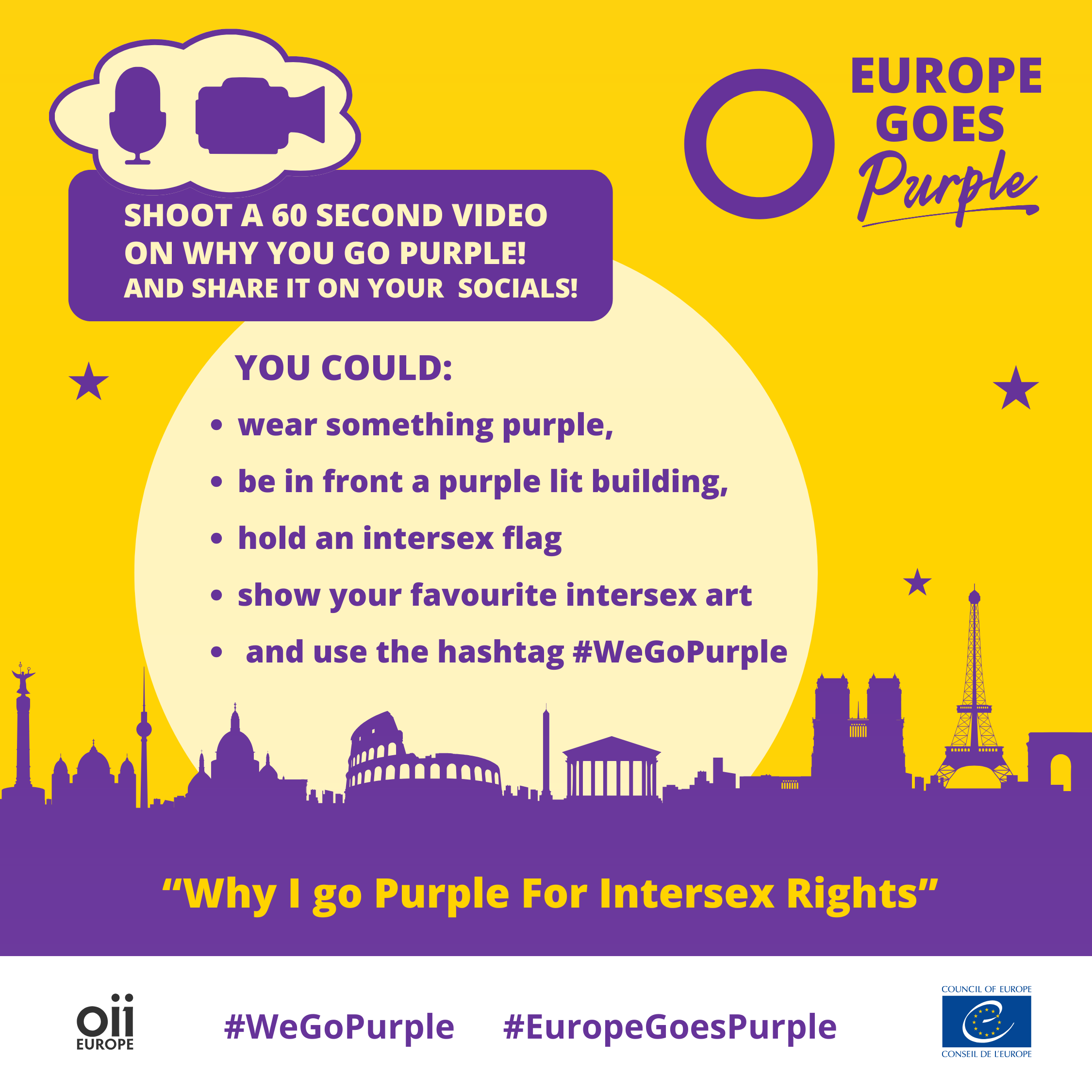 #EuropeGoesPurple is a joint Council of Europe (SOGIESC Unit) and OII Europe (Organisation Intersex International Europe) initiative.