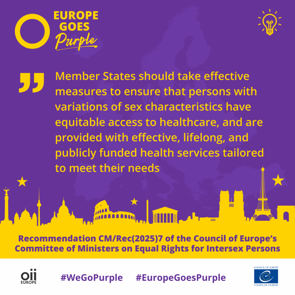 Our social media campaign highlights a selection of the topics covered by Recommendation CM/Rec(2025)7, connecting them with personal quotes from intersex individuals and their families.